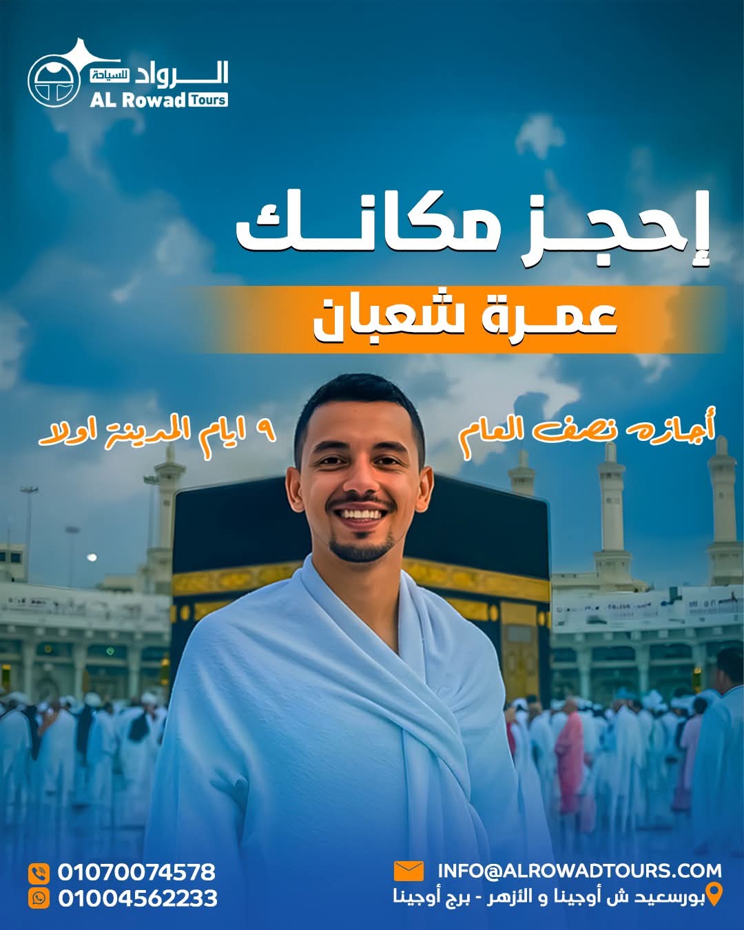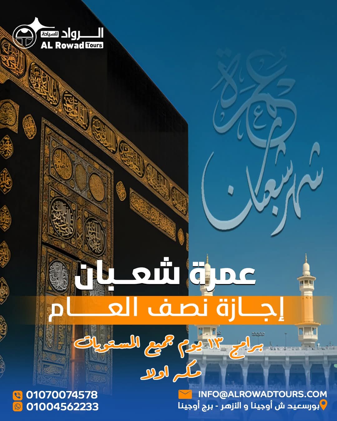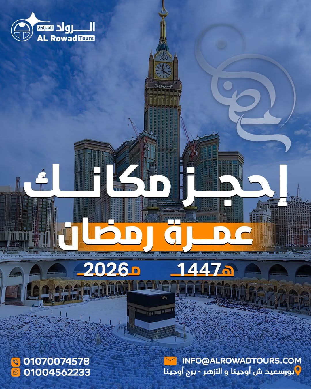 🌙 عمرة رمضان… أجر عظيم بسعر مناسب 🌙 رمضان شهر الرحمة والمغفرة وشهر القُرب من ربنا 🤍 وأجمل حاجة ممكن تعملها في الأيام المباركة دي إنك تعتمر وتعيش روحانية رمضان قدّام بيت الله الحرام 🕋 قال رسول الله ﷺ: «عمرة في رمضان تعدل حجة» فضل كبير وأجر عظيم… وفرصة متتعوضش ✨ ومع الرواد للسياحة – […]